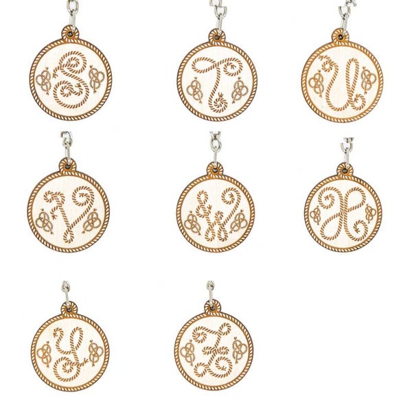 Clauer de fusta massissa d'auró, gravada amb làser per les dues cares.