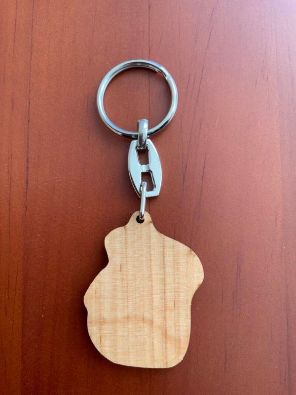 Clauer de fusta massissa de cirerer, gravada amb làser.