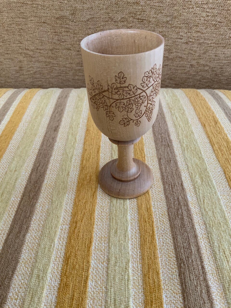 Copa de fusta de bedoll tornejada a mà i gravada amb làser.