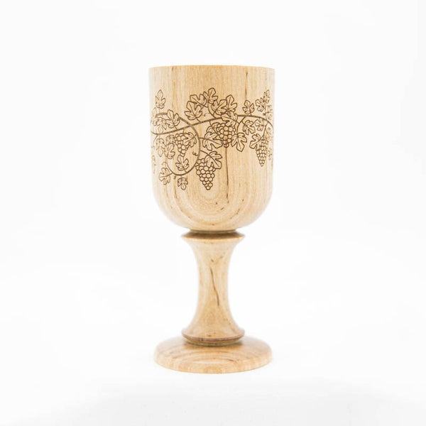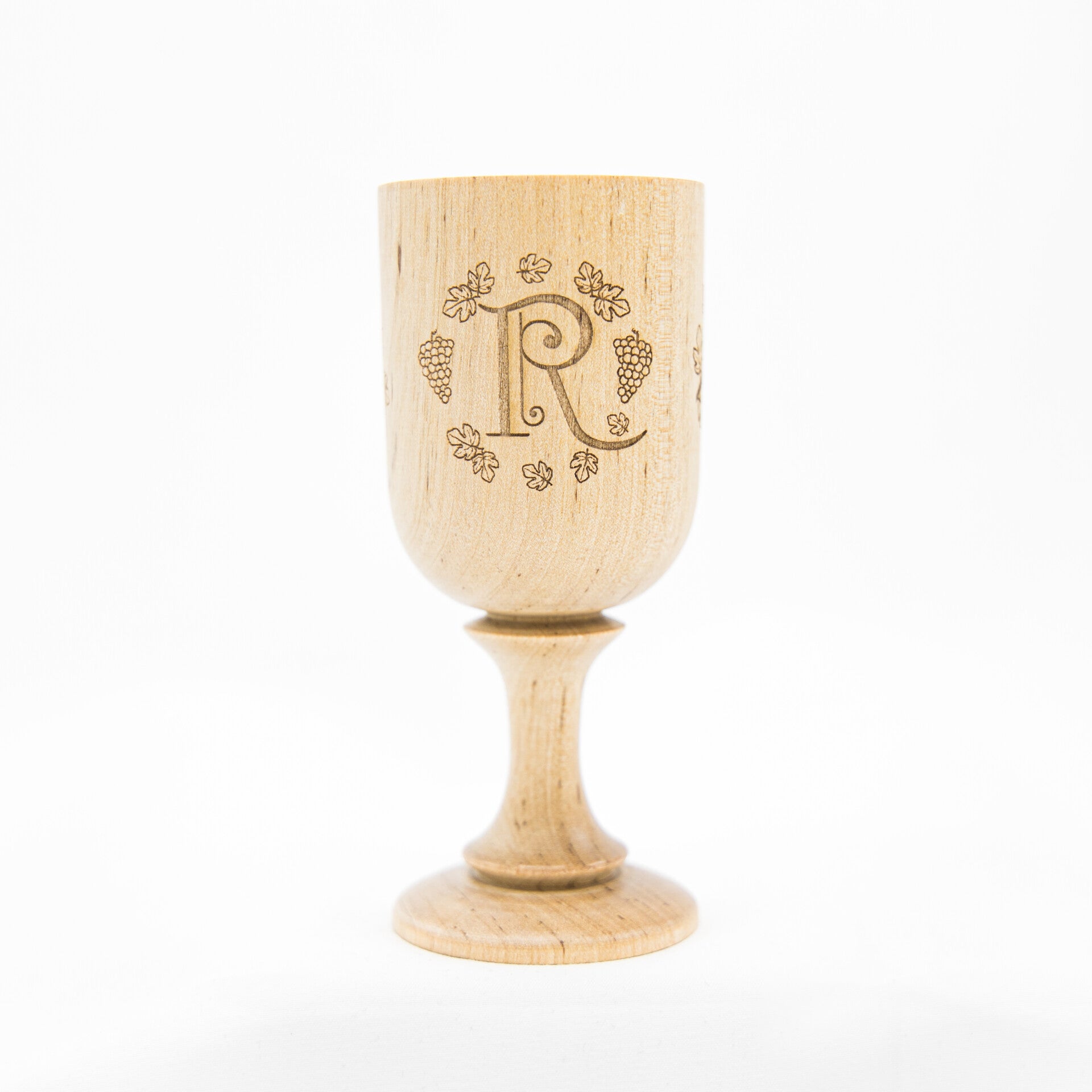 Copa de fusta de bedoll tornejada a mà i gravada amb làser.
