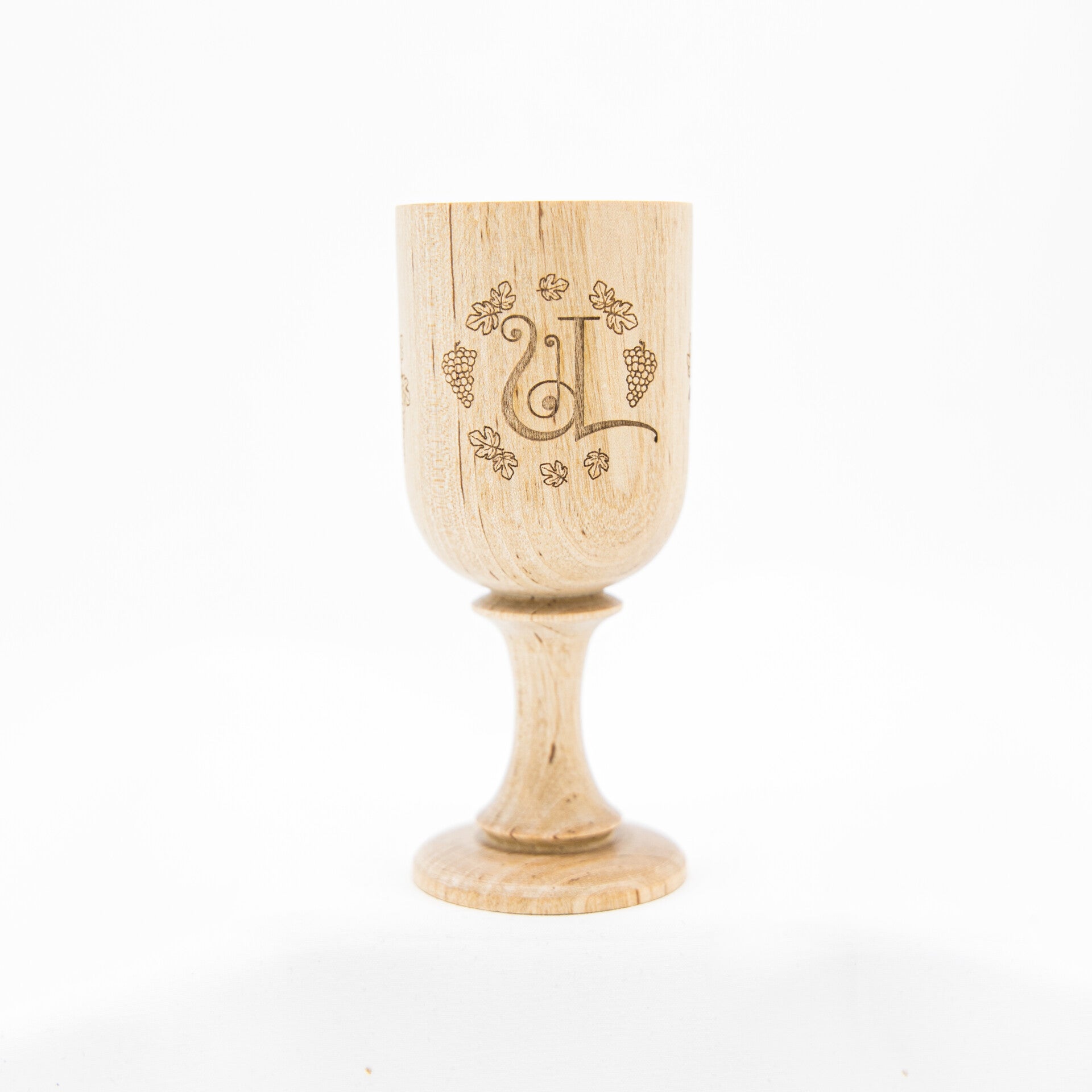 Copa de fusta de bedoll tornejada a mà i gravada amb làser.