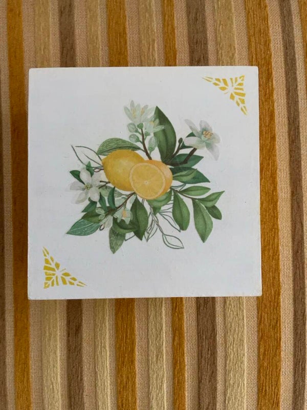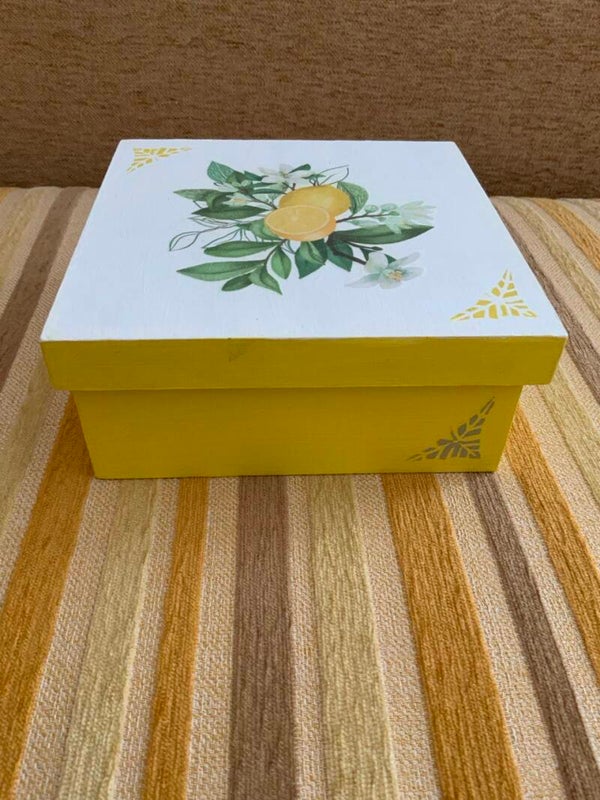 Capsa de DM decorada amb pintures guix i paper d'arròs.
