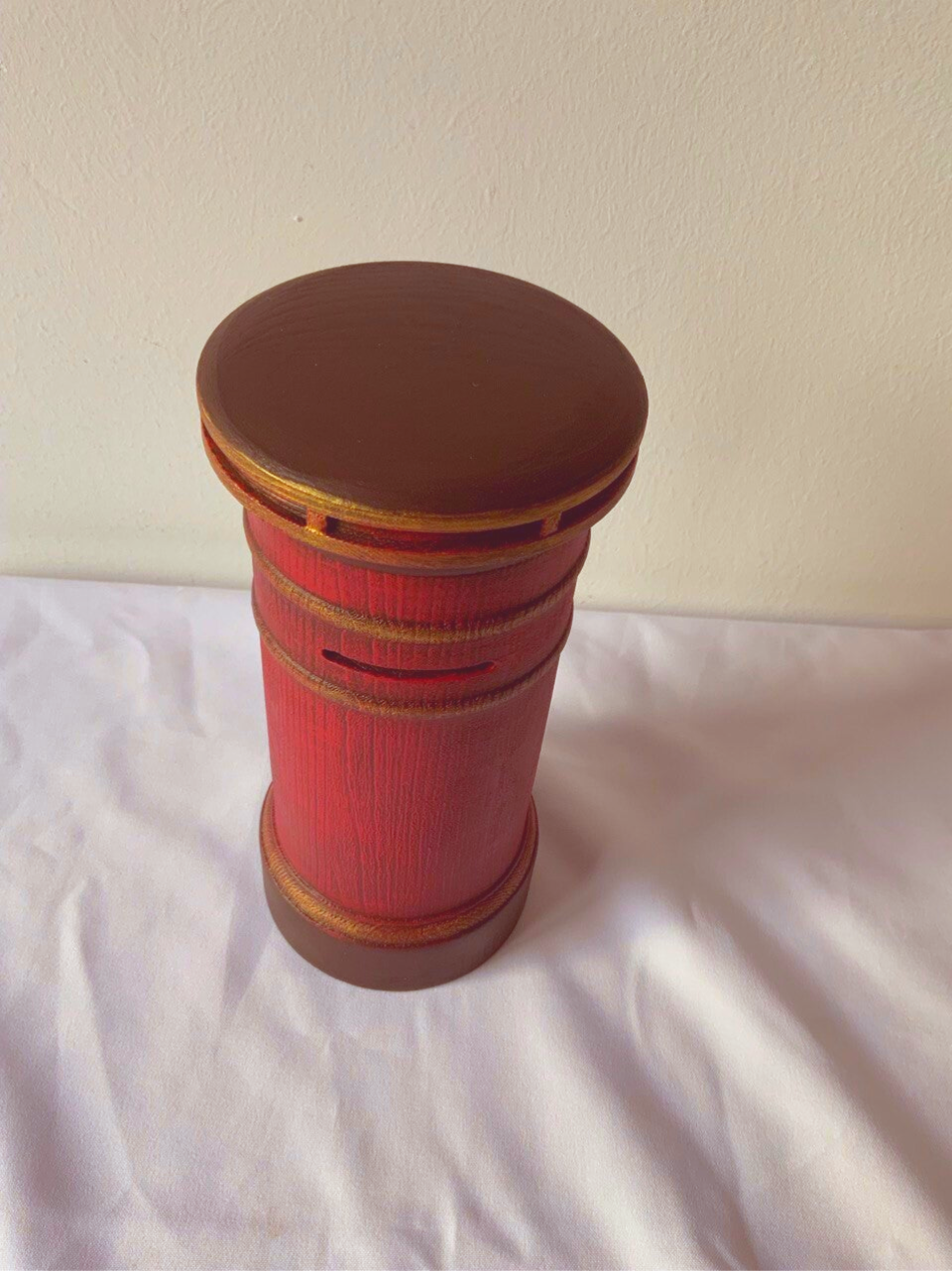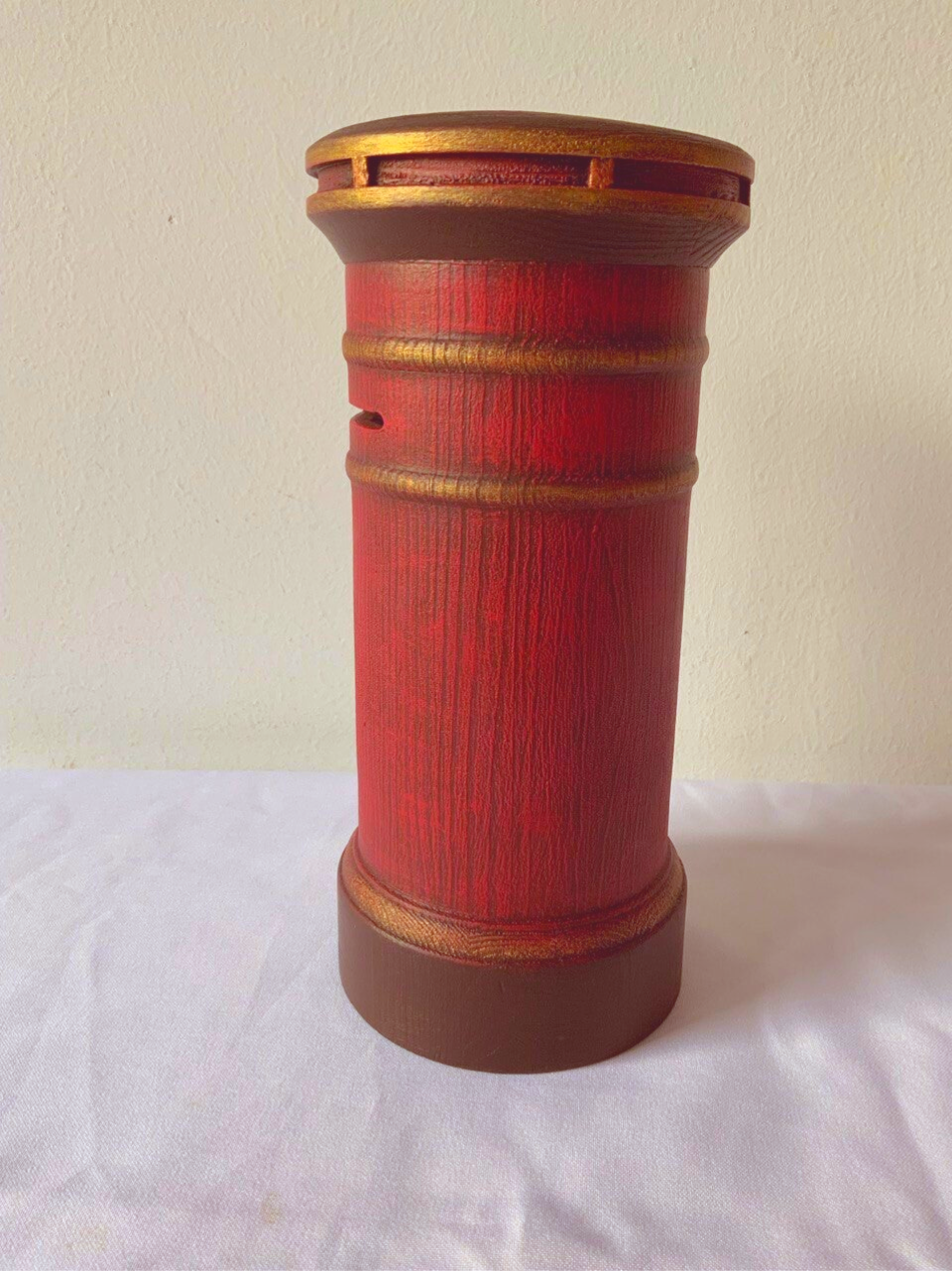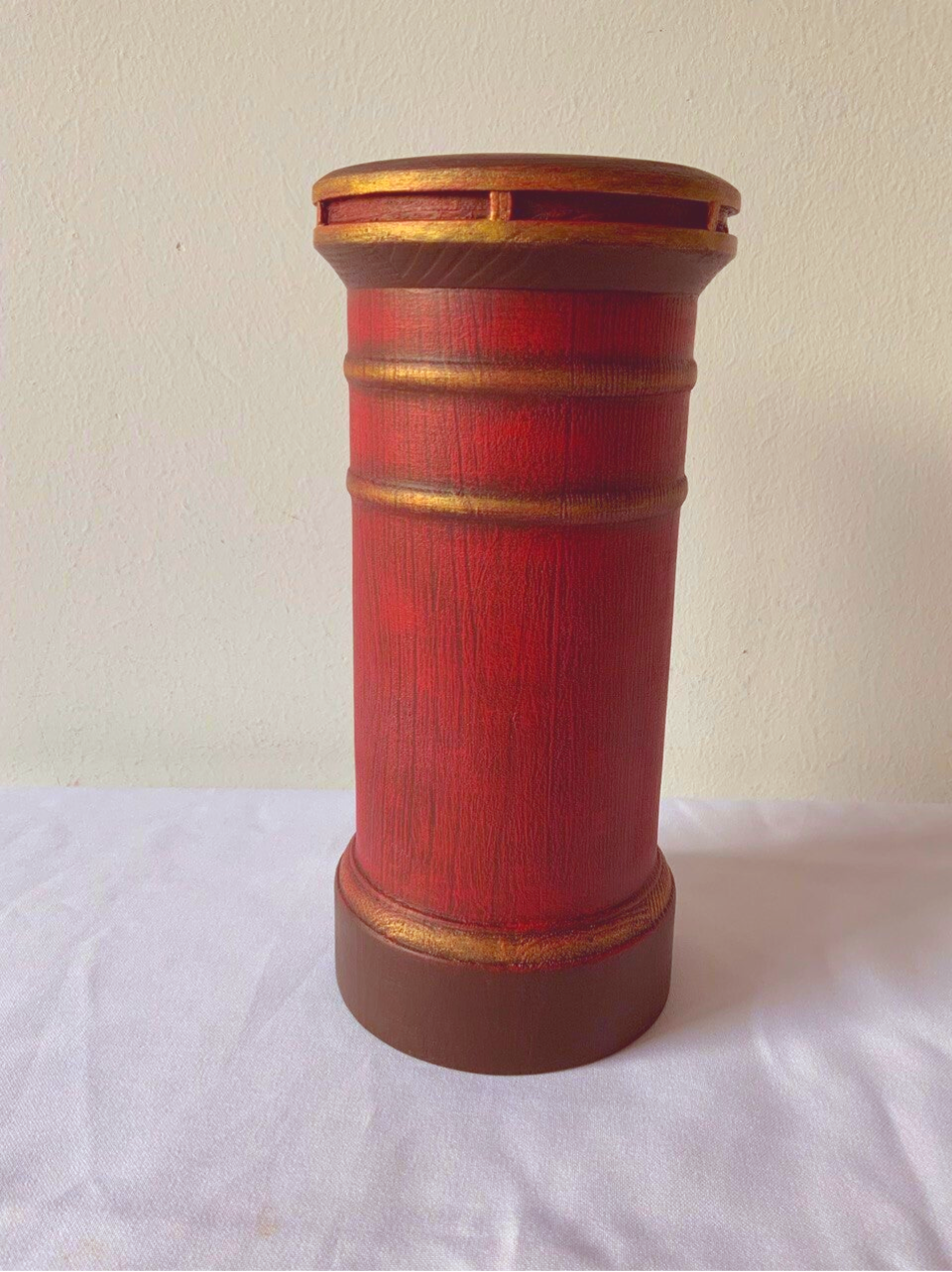 Guardiola de fusta decorada amb pintures guix.