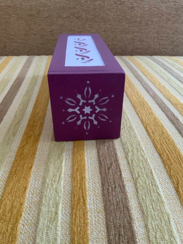 Capsa estoig de fusta decorada amb pintures guix.Dimensions: 21,5x6,5x7 cm.