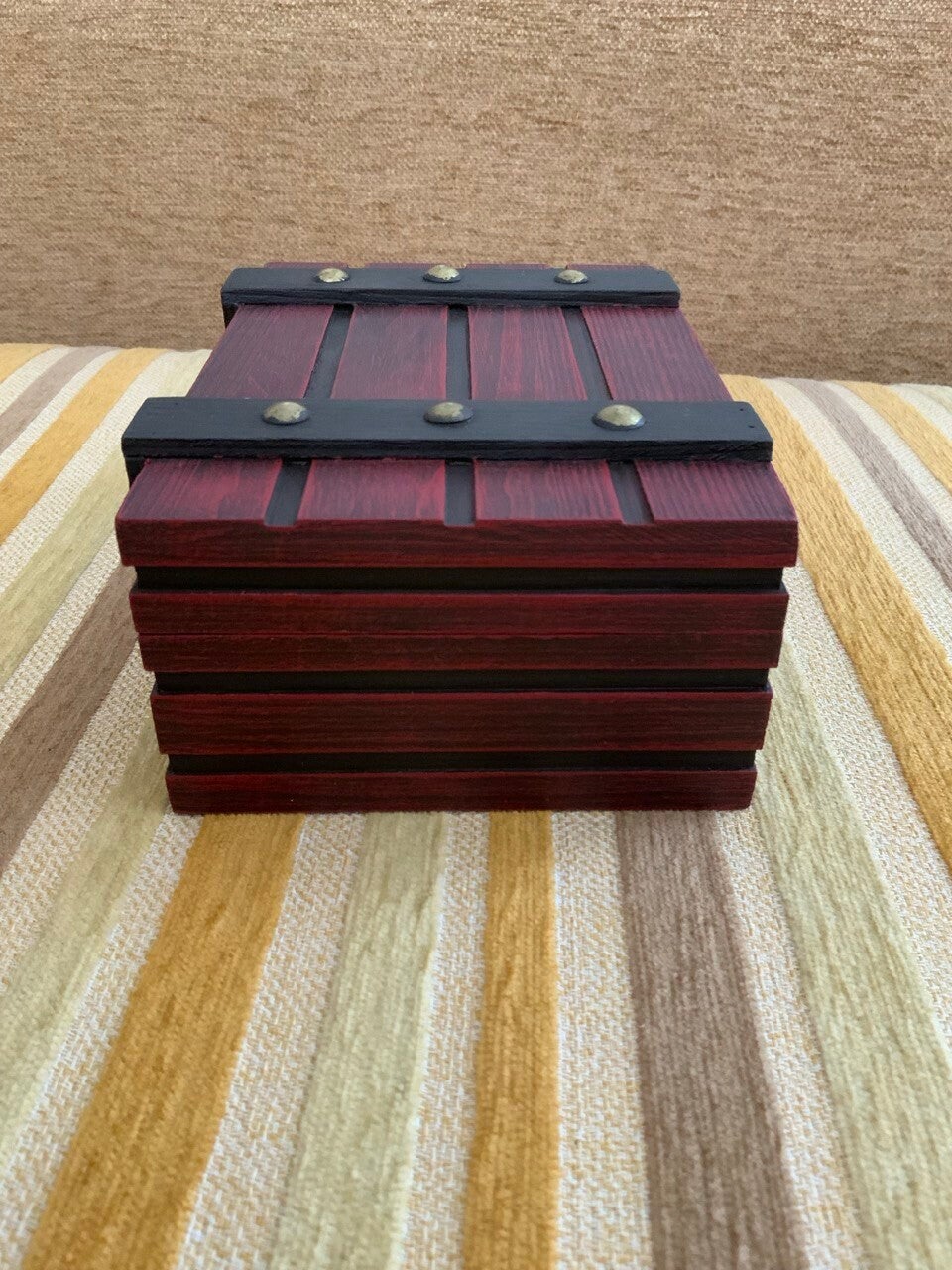 Capsa de fusta decorada amb pintures guix i transferències.Dimensions: 10x8x6 cm.
